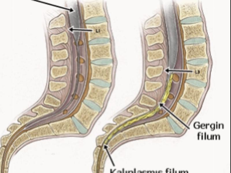 It is a clinical picture in which progressive orthopedic deformities, weakness in the feet and legs, pain in the waist and/or legs, scoliosis and urinary-defecation defect can be seen due to the stretching of the spinal cord.