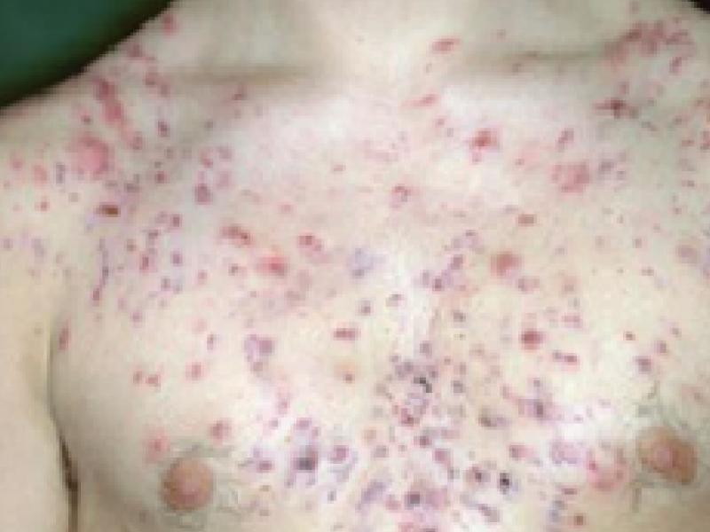 Acne vulgaris is an inflammation of the hair follicle and associated sebaceous glands. The disease manifests itself in the form of comedones, (open as black dots or closed as white dots), papules, pustules and inflammatory processes called nodules. The disease is most common on the face, neck, shoulders, back. It settles in seborrheic areas such as the chest, that is, in areas where oil secretion is high.